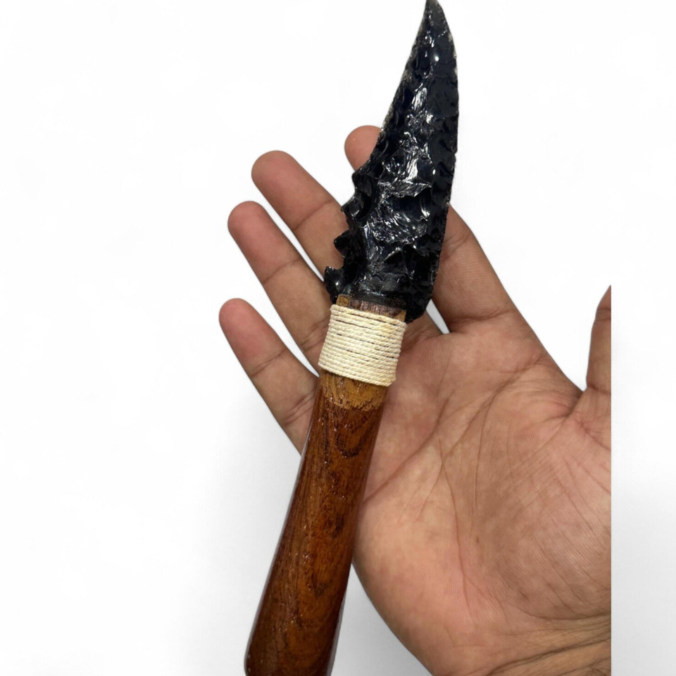 Wholesale Obsidian Ritual Spear Knife with Carved Wooden Handle Metaphysical Altar Tool