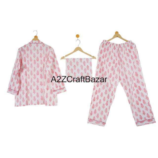 Wholesale Of 100% Cotton PJ Set Block Printed Floral Pajama Top and Bottom Summer Night Wear Ankle-Length Sleepwear For Womens