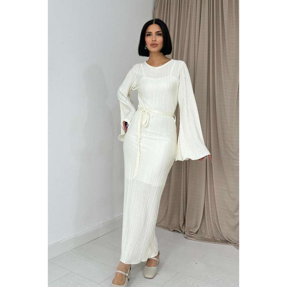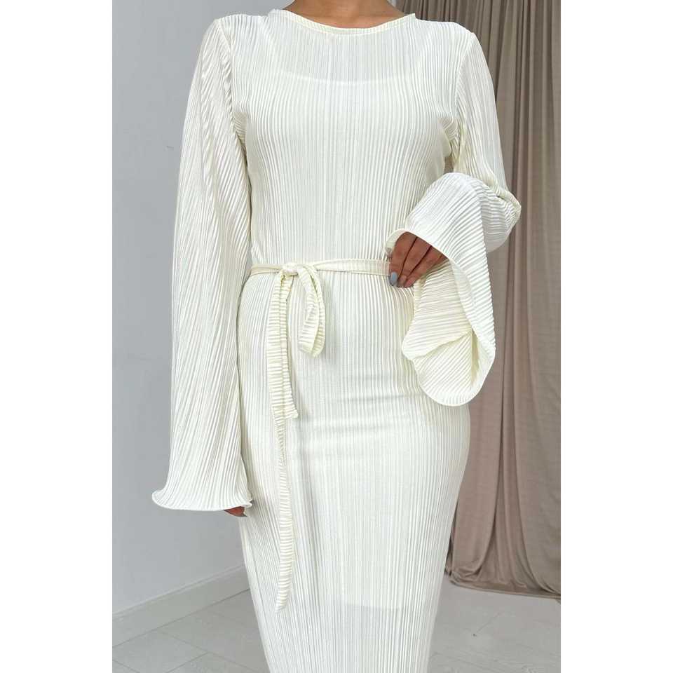 Wholesale Off-White Spanish Sleeve Pleated Cocktail Dress