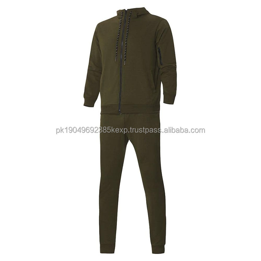 Wholesale Olive Green Tracksuits For Men Custom Plain Hoodie And Jogger Two Piece Casual Sportswear Supplier