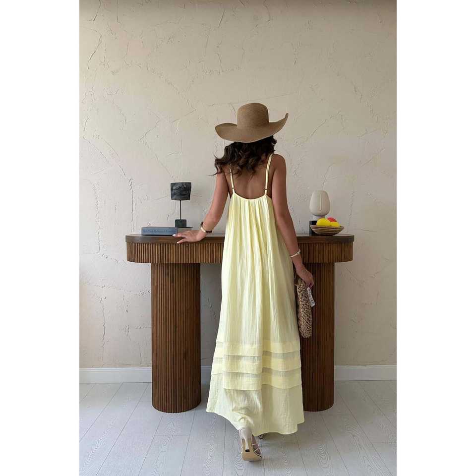 Wholesale One Size Yellow Strappy Modest Muslin Dress African/European/American Style Solid Floor-Length for Day Prom Party Sewn