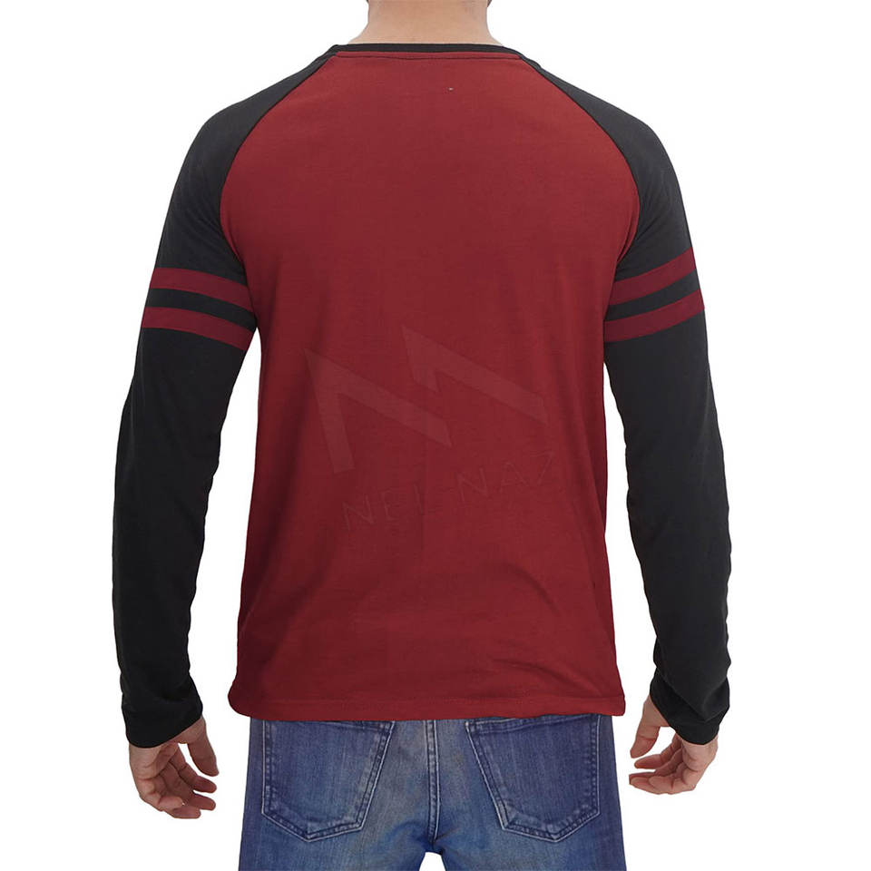 Wholesale Online Shopping Soft Cotton Spandex Blend T-Shirts Men Full Sleeve Black and Red T-Shirts With Sleeve Stripe
