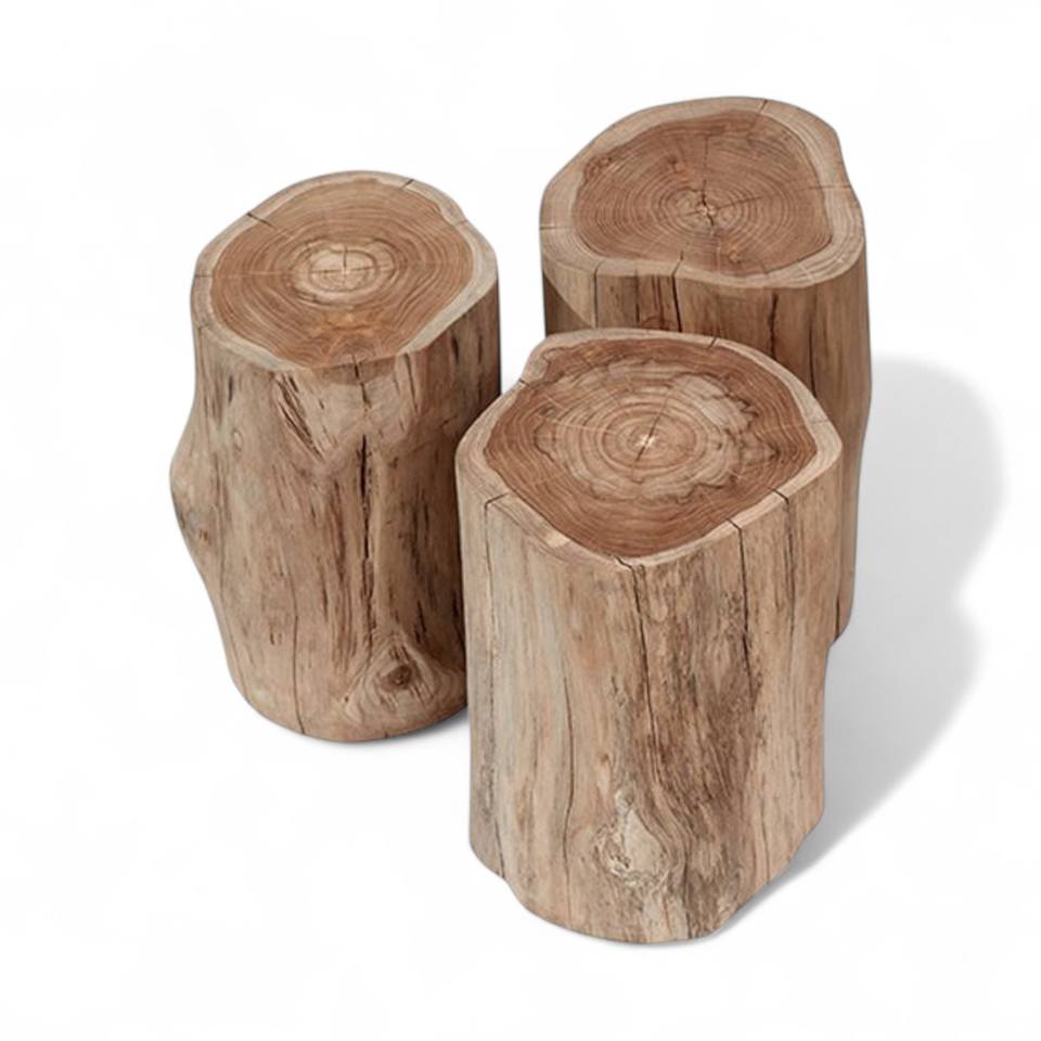 Handmade Natural Teak Tree Pedestal Side Stool Tables
