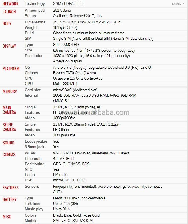 model number:J7 2018