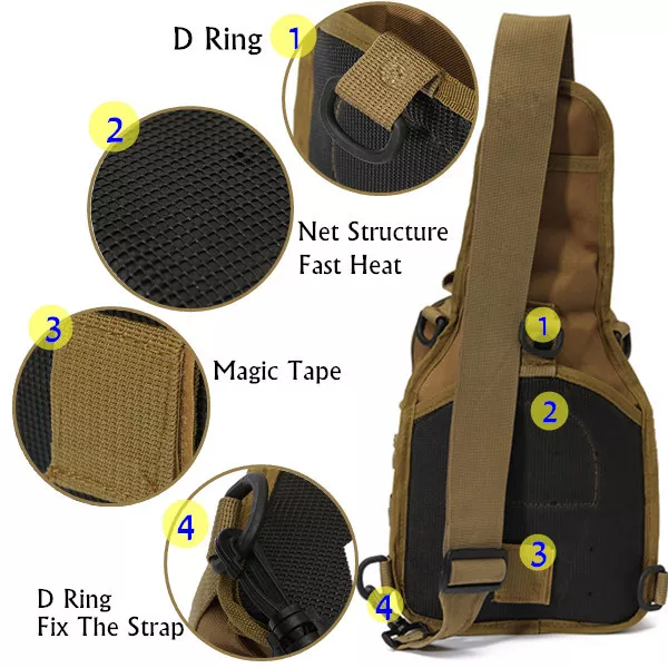 Wholesale Outdoor Camping Hiking Crossbody Canvas Waterproof Zipper Closure Single Shoulder Pack Chest Molle Tactical Sling Bag