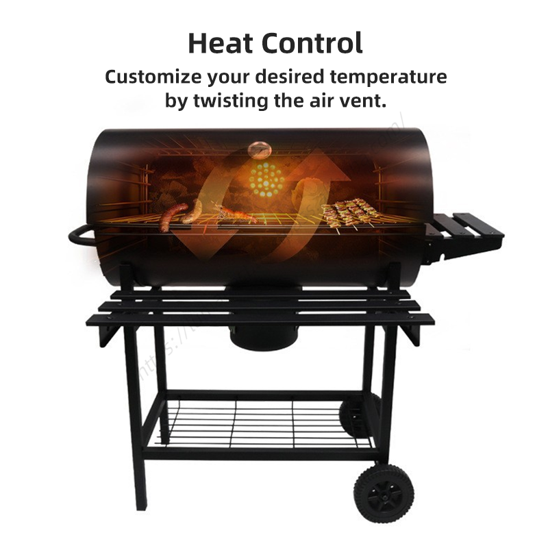 Wholesale Outdoor Camping Portable Oil Drum Smoker Barrel Rotisserie Charcoal Barbecue BBQ