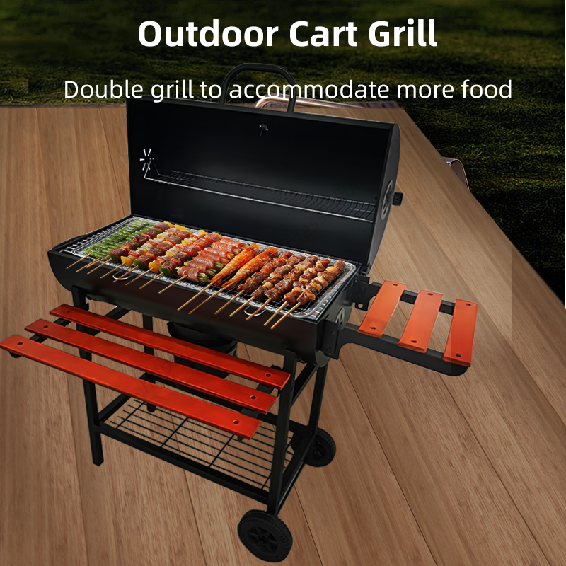 Large Capacity 44*25*44 Inches Double Oven Charcoal Grill Outdoor Camping Picnic Black Stainless Steel BBQ Painted Chimney