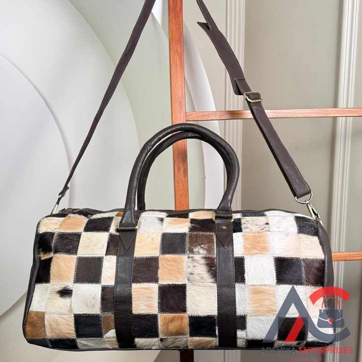 Product name:Cowhide Hair on Patchwork Leather Luggage Travel Bag