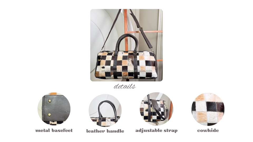 Wholesale Outdoor Cowhide Hair on Patchwork Leather Luggage Travel Bag Business Suit Bag Style Luxury Duffel Travelling Bag