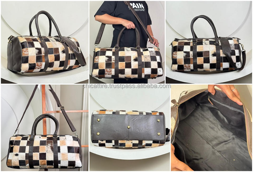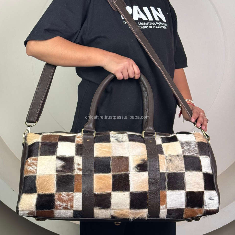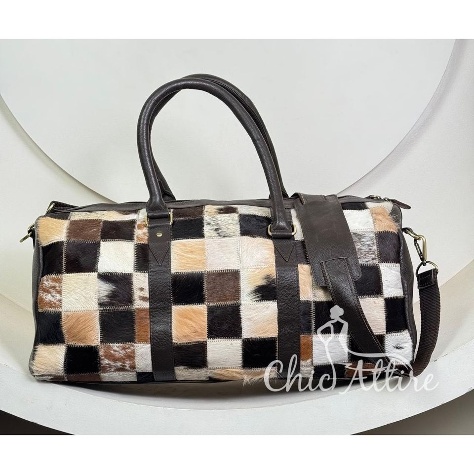 Product name:Cowhide Hair on Patchwork Leather Luggage Travel Bag