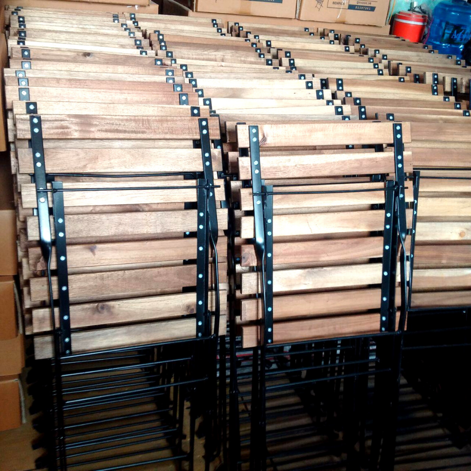 Wholesale Outdoor Garden Pinic Acacia Wood Folding Chairs and Table Bistro Set for Patio Furniture Cheap Price with Steel Frame