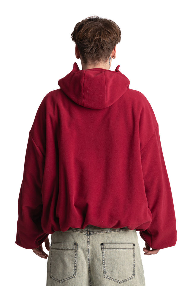 Wholesale Oversized Red Fleece Hoodies for Men & Women Full Face Zip Winter Warm Pullover Custom Streetwear Style OEM Available