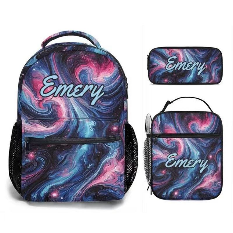 Wholesale Oxford Cute Multi-color Printed Zipper Backpack Lunch Bag and pencil case 3 Pcs Set for Girls Boys School Travel