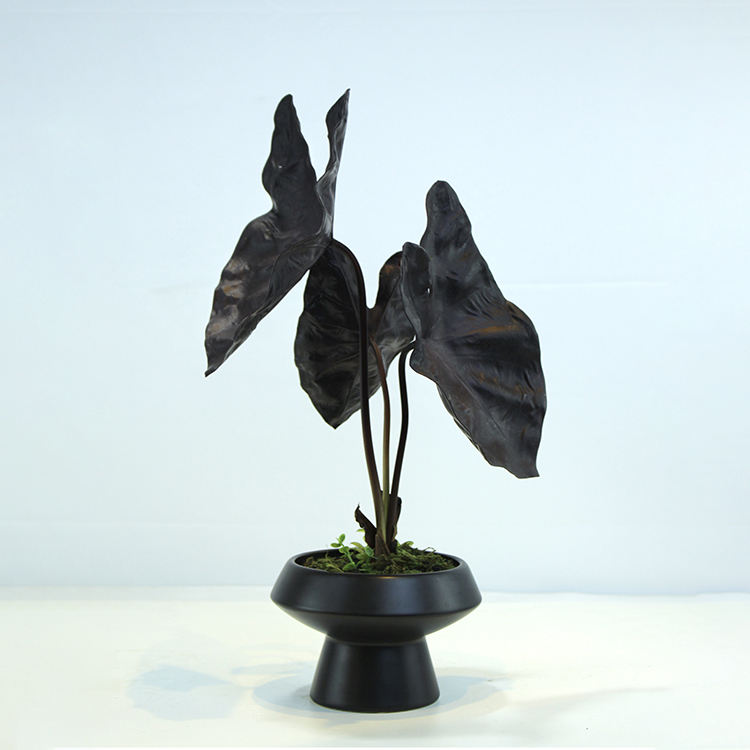 Wholesale PU Alocasia Gageana Aurea Variegated Artificial Plant for Office Desktop Simulation Green Plants Bonsai Trees