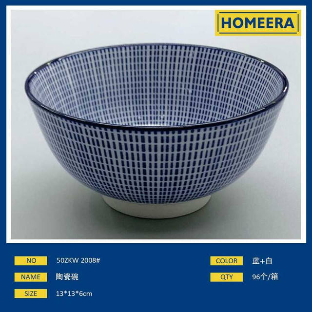 Wholesale Pack of 8 Durable and Stylish 5 Inch Ceramic Bowls Blue and White Oval Pattern Pottery Tableware 13x13x6cm