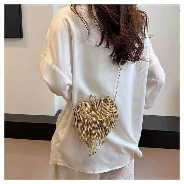 Wholesale Party Bling Bling Purses Women Fashion Chain Crossbody Bags Tassel Rhinestone Heart Handbag