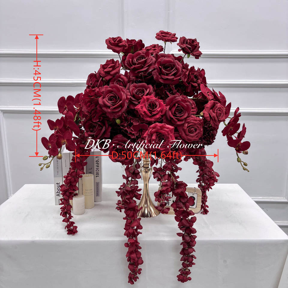 Wholesale Party Event Decoration Floral Arrangement Wedding Table Centerpiece Artificial Silk Red Rose Flower Ball for Wedding
