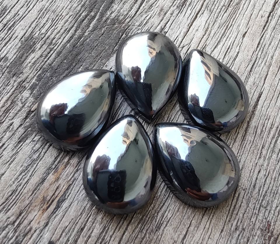 Wholesale Pear Cut Natural Hematite Flat Back Cabochon Loose Gemstones Calibrated in All Sizes with IGI Certificate