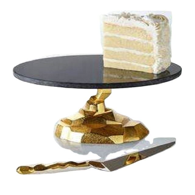 Wholesale Pedestal Leg Marble Top Luxury Cake Stand Designer Gold Marble Cake Stand