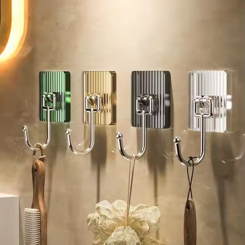 Wholesale Double Amount Light Luxury Transparent Design Self-Adhesive PET Hooks Strong Perforation-Free for Clothes Bathroom