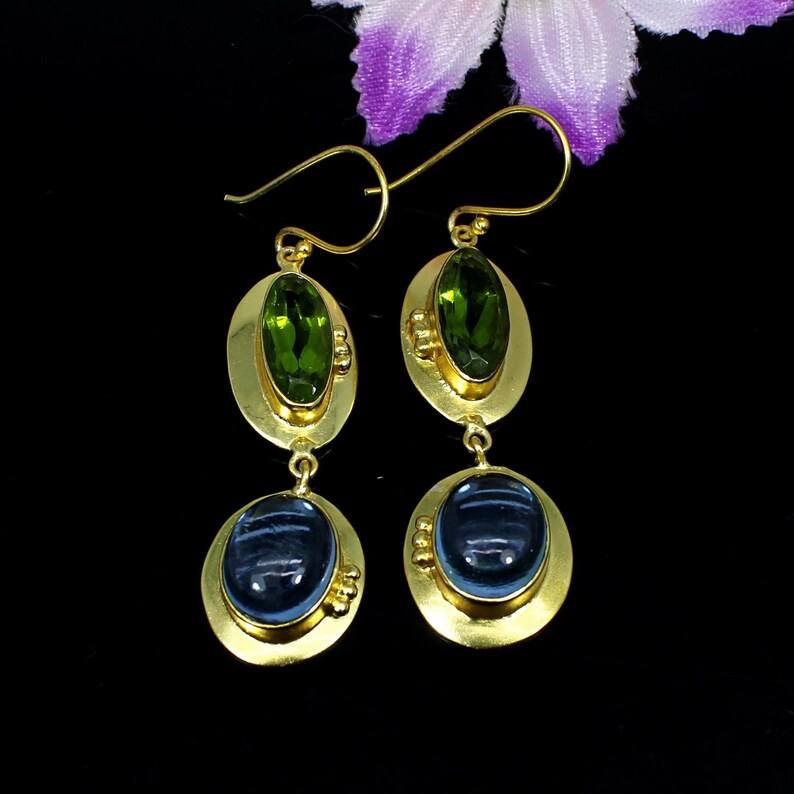 Wholesale Peridot Blue Topaz Hydro Gemstone Drop Earrings 14K Gold Plated Brass Rose White/Yellow Gold Finish Trendy Design