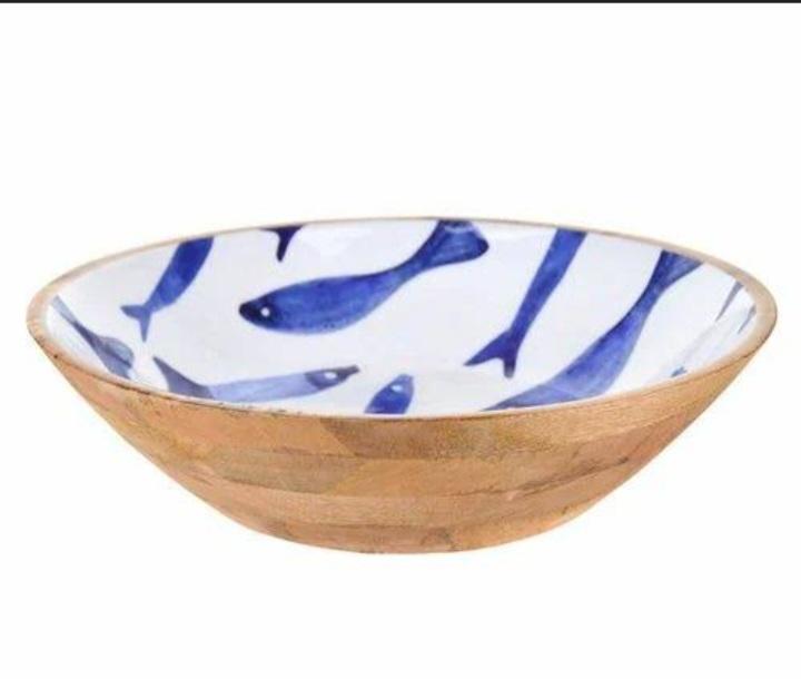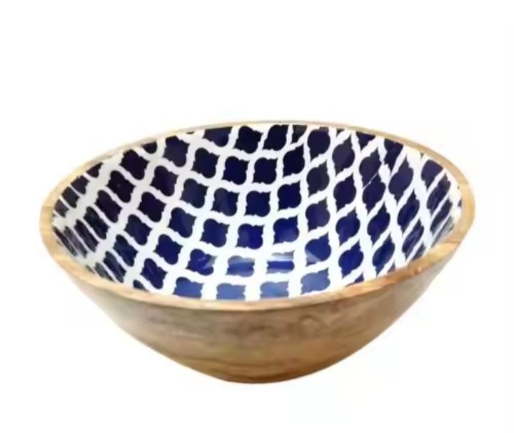 Wholesale Personalized Kitchenware Wooden Round Bowl Sticker Enamil Natural Color Bowl for Serving Food Salad Mixing Fruit Soup