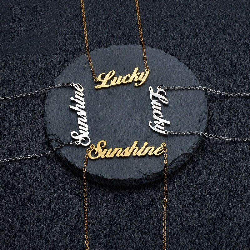 Wholesale Personalized Letter Dangle Charms Statement Necklaces Gold Plated Stainless Steel Custom Logo Name Pendant Necklace