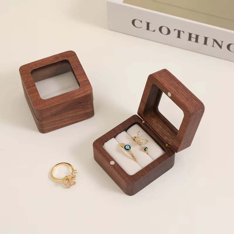 Custom Logo Wooden Jewelry Box Rectangle Shape Storage Box for Jewellery 11.8x7.8x5 cm Gift Accessories