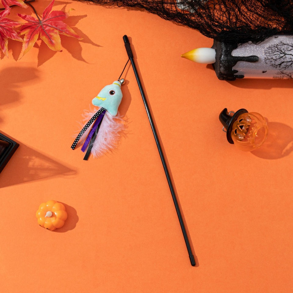 Wholesale Pet Cat Interactive Teaser Toys Ghost Pumpkin Bat Halloween Interactive Pet Cat Teaser Stick Toys for Cats