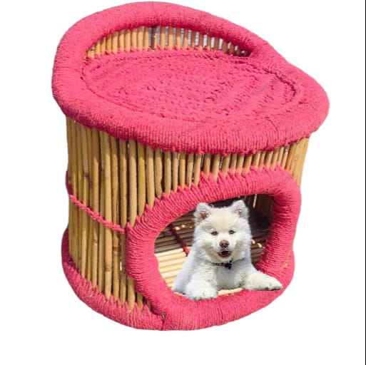 Wholesale Pet Storage Ottoman Home Decoration Wicker Wooden Ottoman Pet Animal Sitting Bamboo Cage Bone Inlay Console