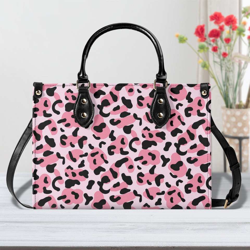 Wholesale Pink Fierce Leopard Print PU Leather Handbag for Women Dropship POD Luxury Lady Tote Bag for Women