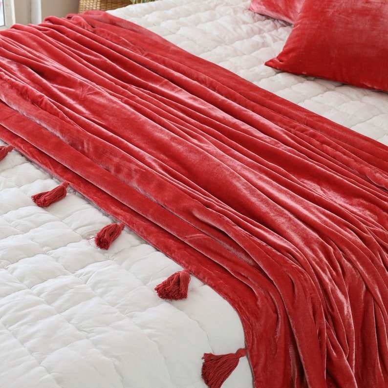 Wholesale Pink Luxe Velvet Bedspread Handmade Knotted Tassels Throw Blanket Bohemian Sofa Throw Custom Size for Winter Living