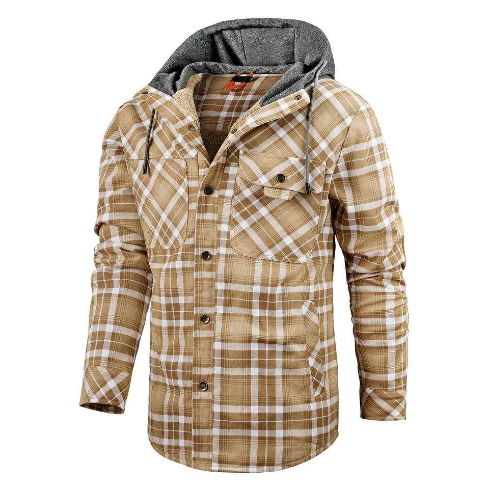 Wholesale Plaid Quilted Lined Winter Coats Thick Hoodie Outwear Men Fleece Shirts Outdoor Coat Jacket