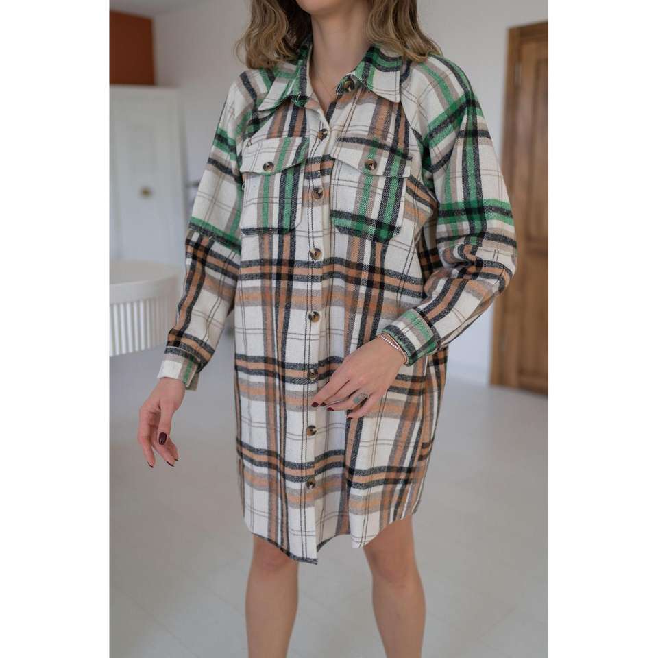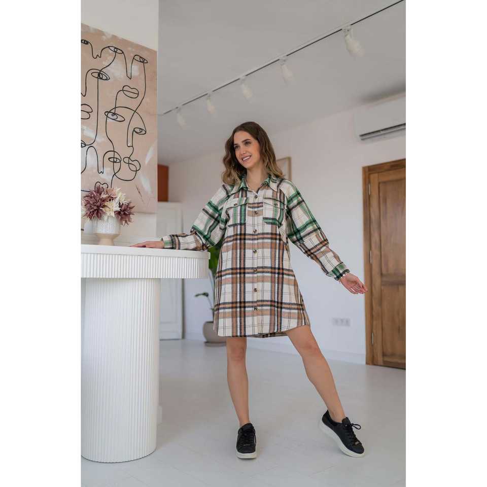 Wholesale Plaid Shirt Dress Natural Waist Turn-down Collar Woven Fabric Daily Casual Wear