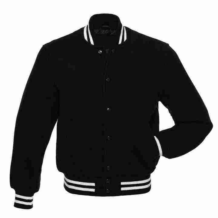 Wholesale Plain Black and White Hooded Varsity Jacket Custom High Quality Baseball Jacket Fleece Varsity Jackets for Men
