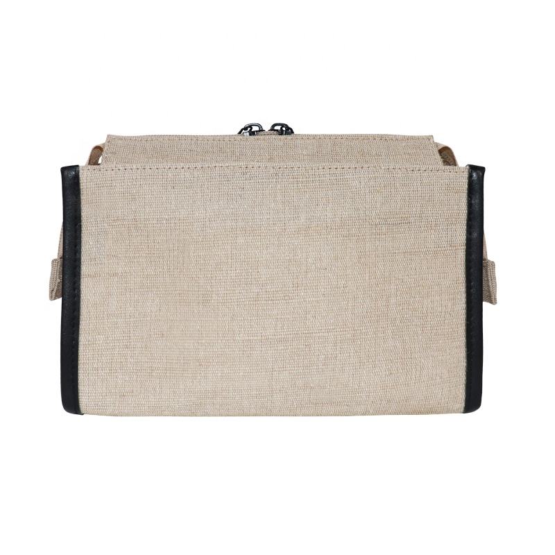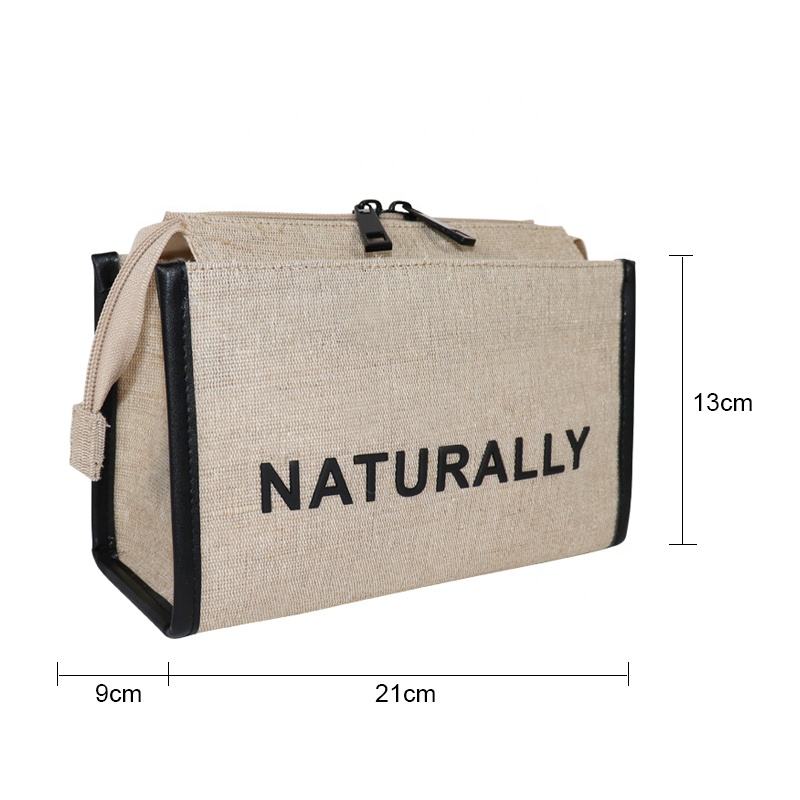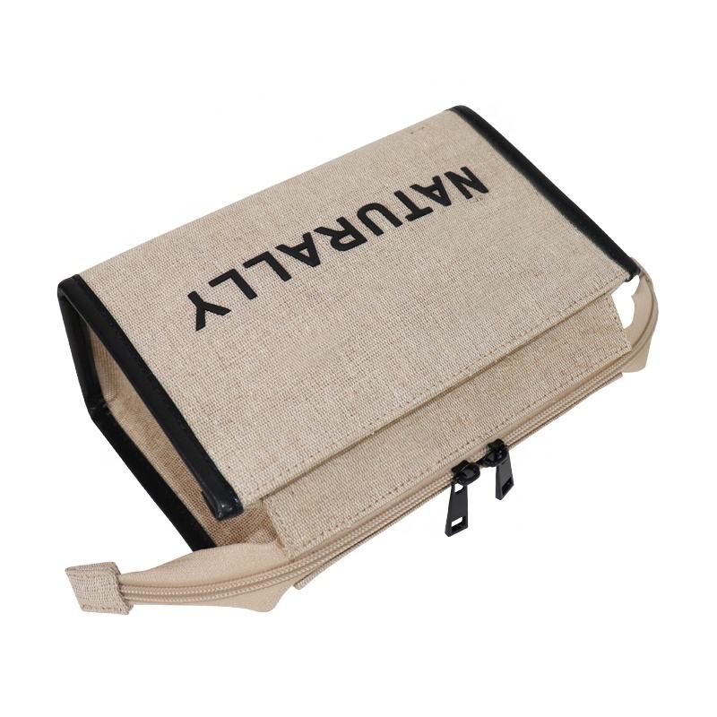 Wholesale Plain Natural Jute Women's Makeup Bags Travel Toiletry Cosmetic Double Zipper Bag Custom Logo Clear Jute Cosmetic Bag