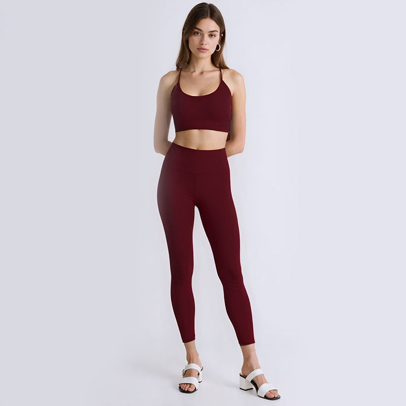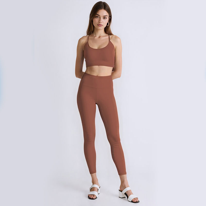 Wholesale Plus Size Sportswear Set Solid High Sports Bra Breathable High Waist Leggings Front Logo Short Sleeve Two Piece