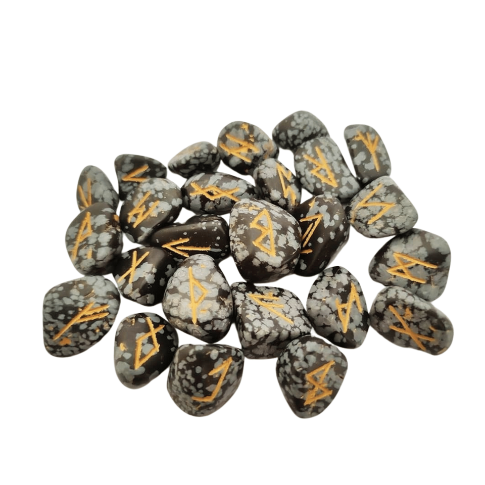 Wholesale Polished Snowflake Obsidian Tumbled Rune Set Engraved Crystal Runes for Healing Divination Feng Shui Carved Gemstones