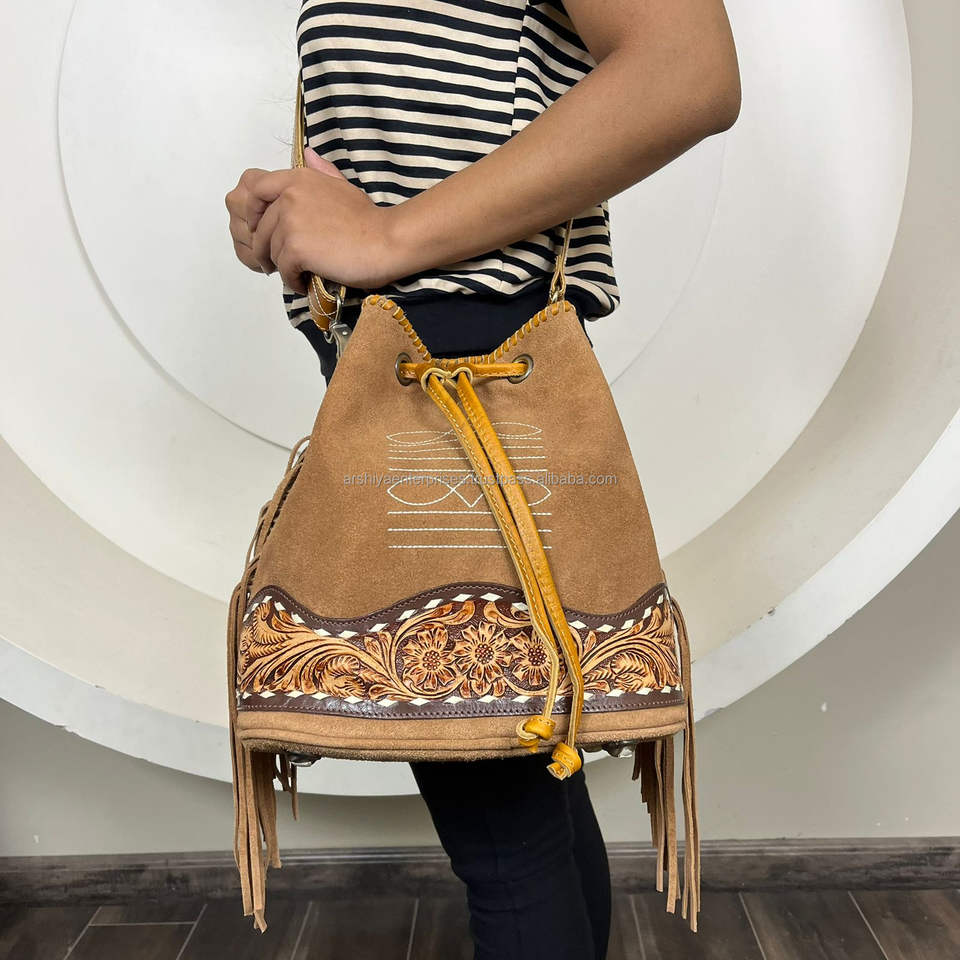 Type:Women's Cross-body Suede Leather Bucket Bag