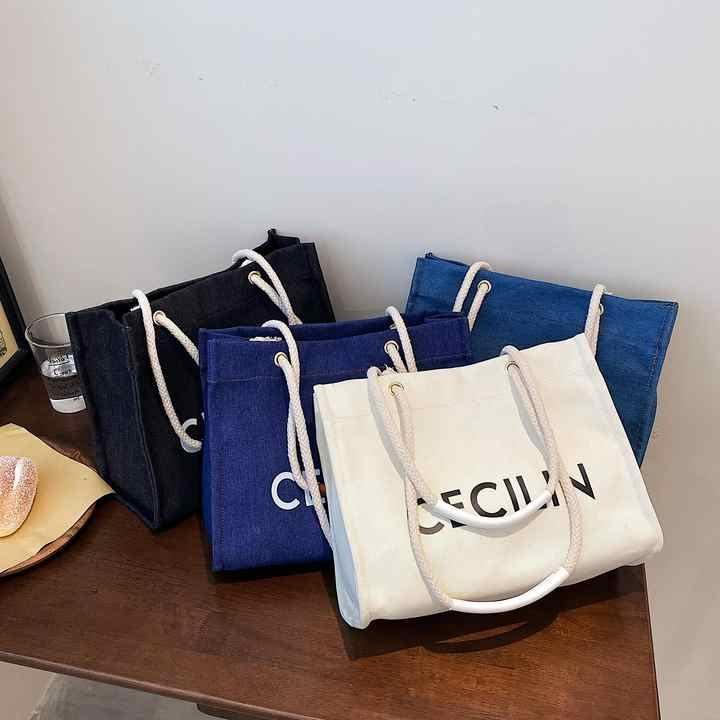 Wholesale Popular Foldable Twill Cotton Custom Tote Shopping Bag with Logo White Rope Handle for Gifts