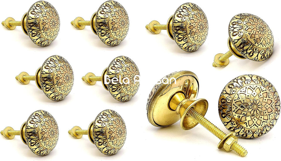 Wholesale Premium Brass Cabinet Knobs Etched Floral Door Handles for Kitchen Bedroom Hotel Apartment Beautifully Decorative