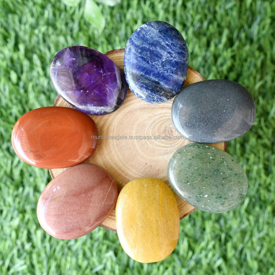 Wholesale Premium Handmade Healing Tree Design Chakra Stone Set Crystal Engraved with Gift Box
