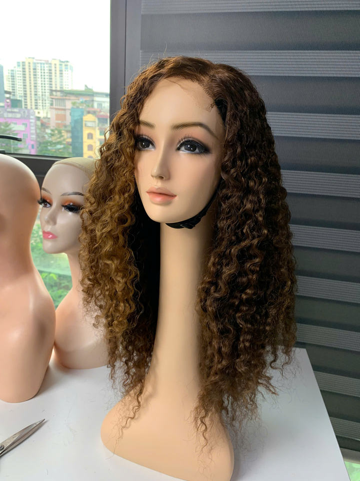 Wholesale Premium High Quality Remy Vietnamese Bulk Long Curly Hair Lace Closure Wig Black Brown Color