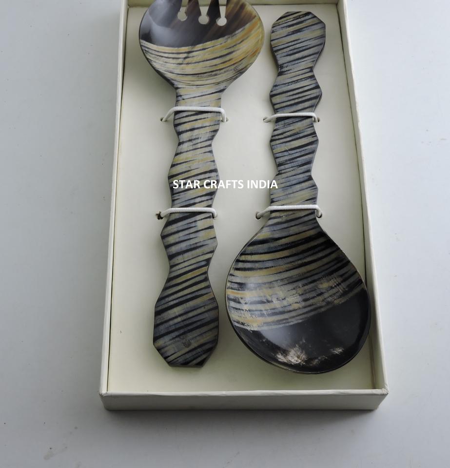 Wholesale Premium Quality Horn Salad Servers Set of 2 Pcs Premium Kitchenware Serving Spoons for Parties From India