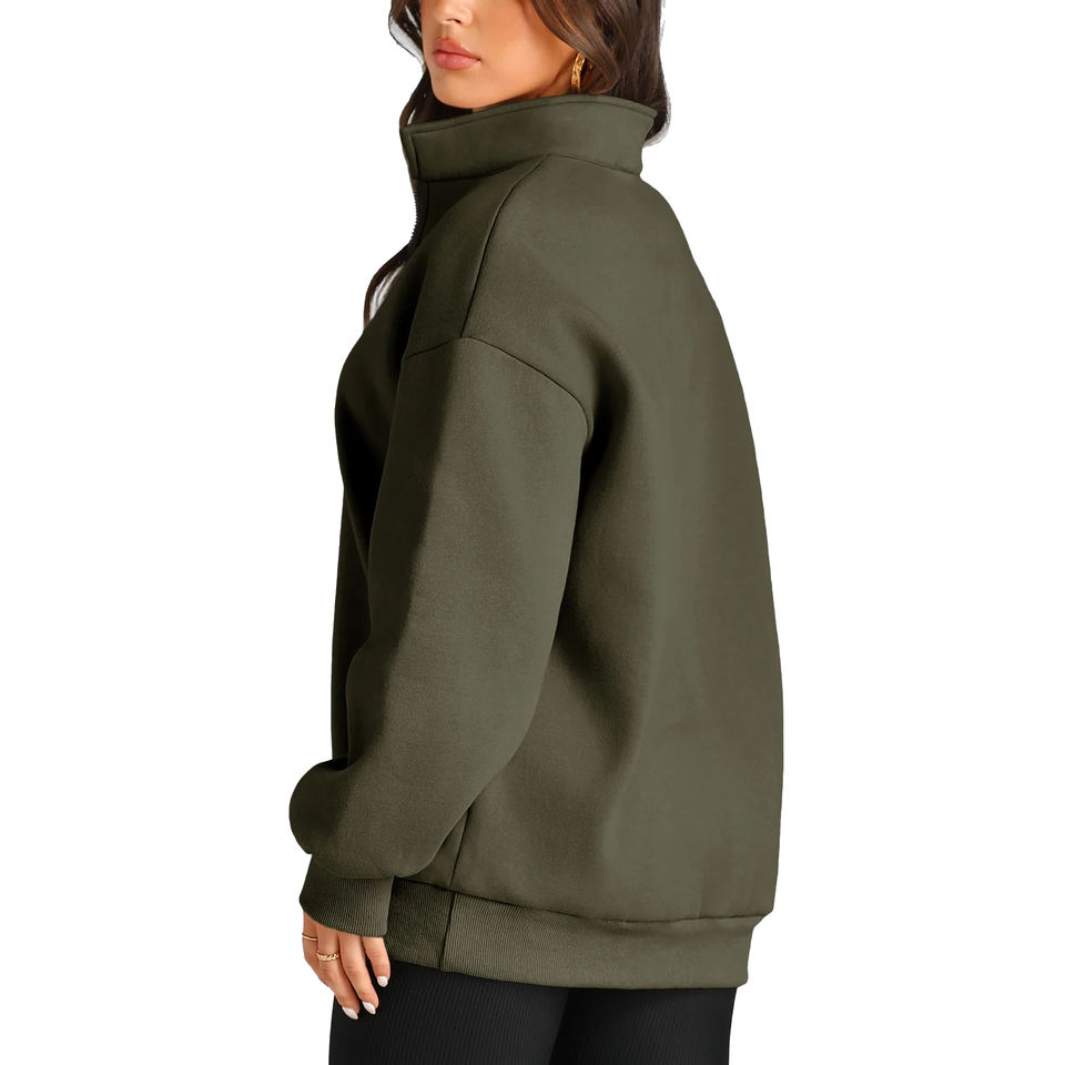 Wholesale Premium Quality Custom Screen Printed Drop Shoulder Sweatshirt Quarter Zipper Pullover Women's Hoodies & Sweatshirts