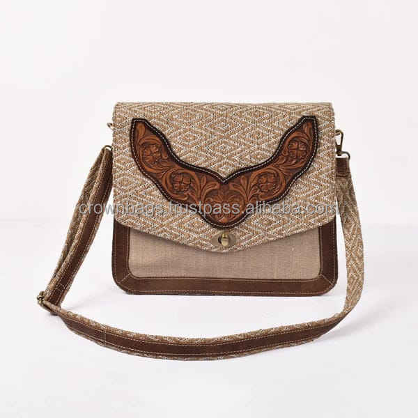 Wholesale Premium Quality Women's Western Fashion Handbag Genuine Leather Canvas Vintage Style Frame Shape Zipper CROWN BAGS 3L+