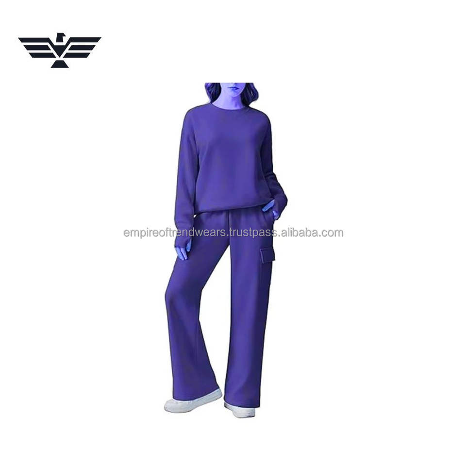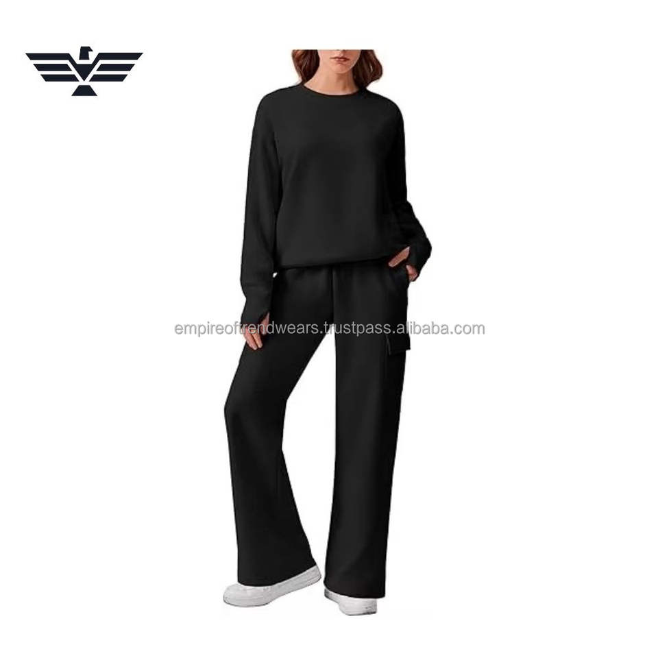 Wholesale Premium Women's Black Hooded Casual Two-Piece Lounge Set | Short Sleeve Top Wide Leg Cargo Pants | Solid Front