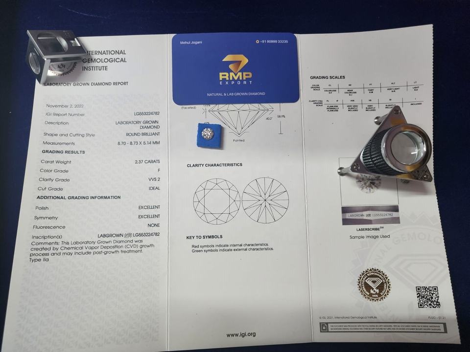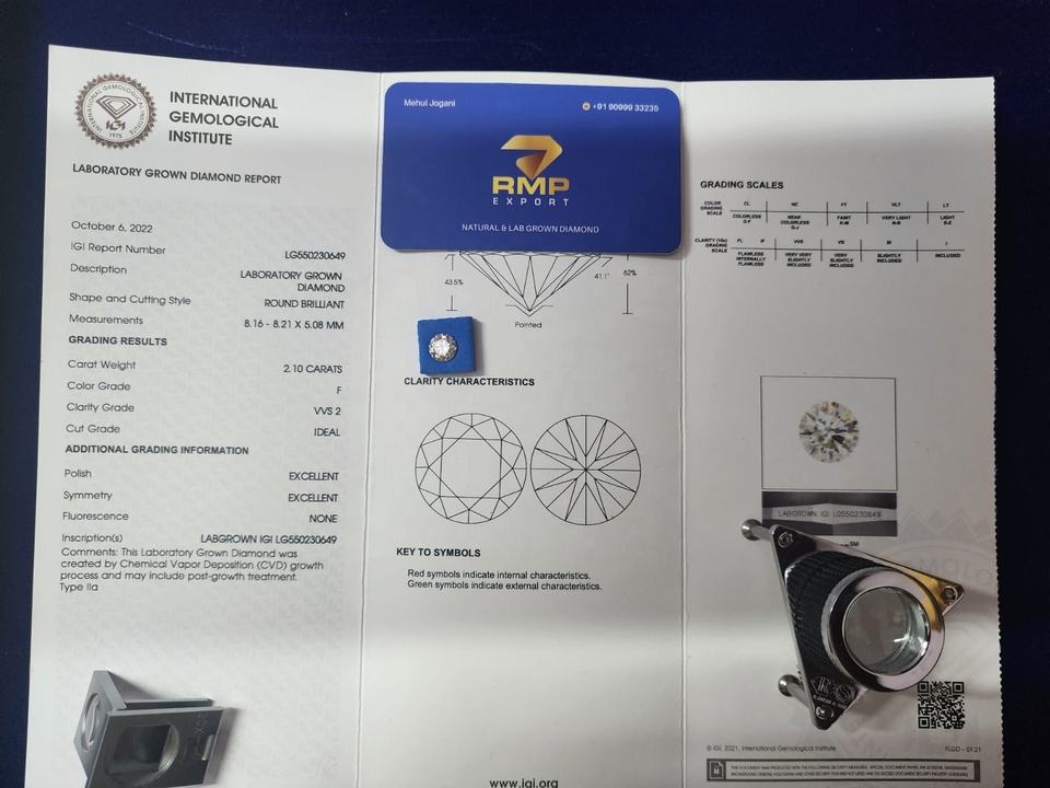 Wholesale Price 2.10ct F VVS2 Ex CVD HPHT Lab Grown Diamonds White Round Lab Created Loose Diamond IGI GIA Certificate