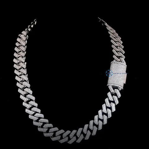 Wholesale Price 20mm 22mm S925 Cuban Link Chain White Gold 3Rows Shape Hip Hop Jewelry Iced Out Moissanite Cuban Chain Necklace