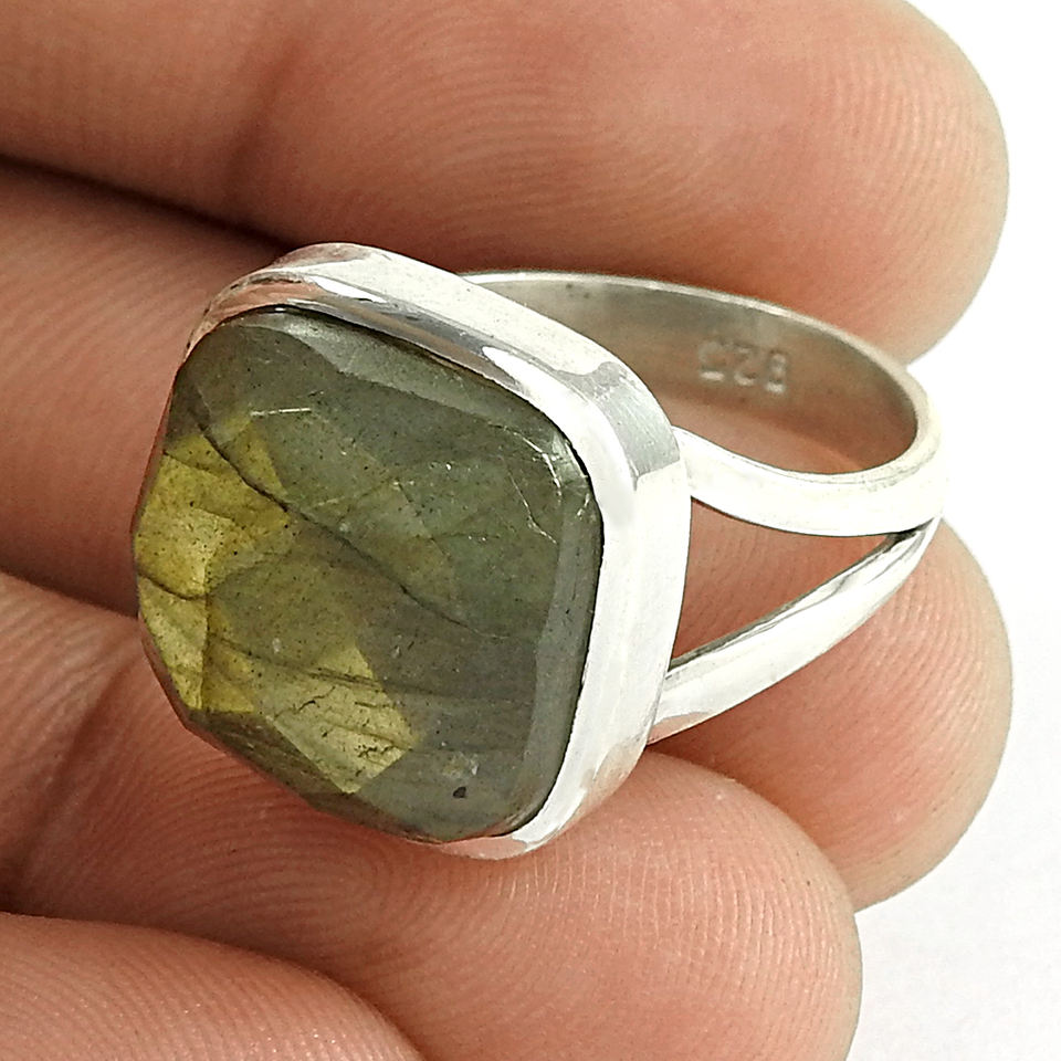 Wholesale Price Best Quality 925 Sterling Silver Natural Labradorite Gemstone Cushion Shape Ring Handmade Jewelry Manufacturer